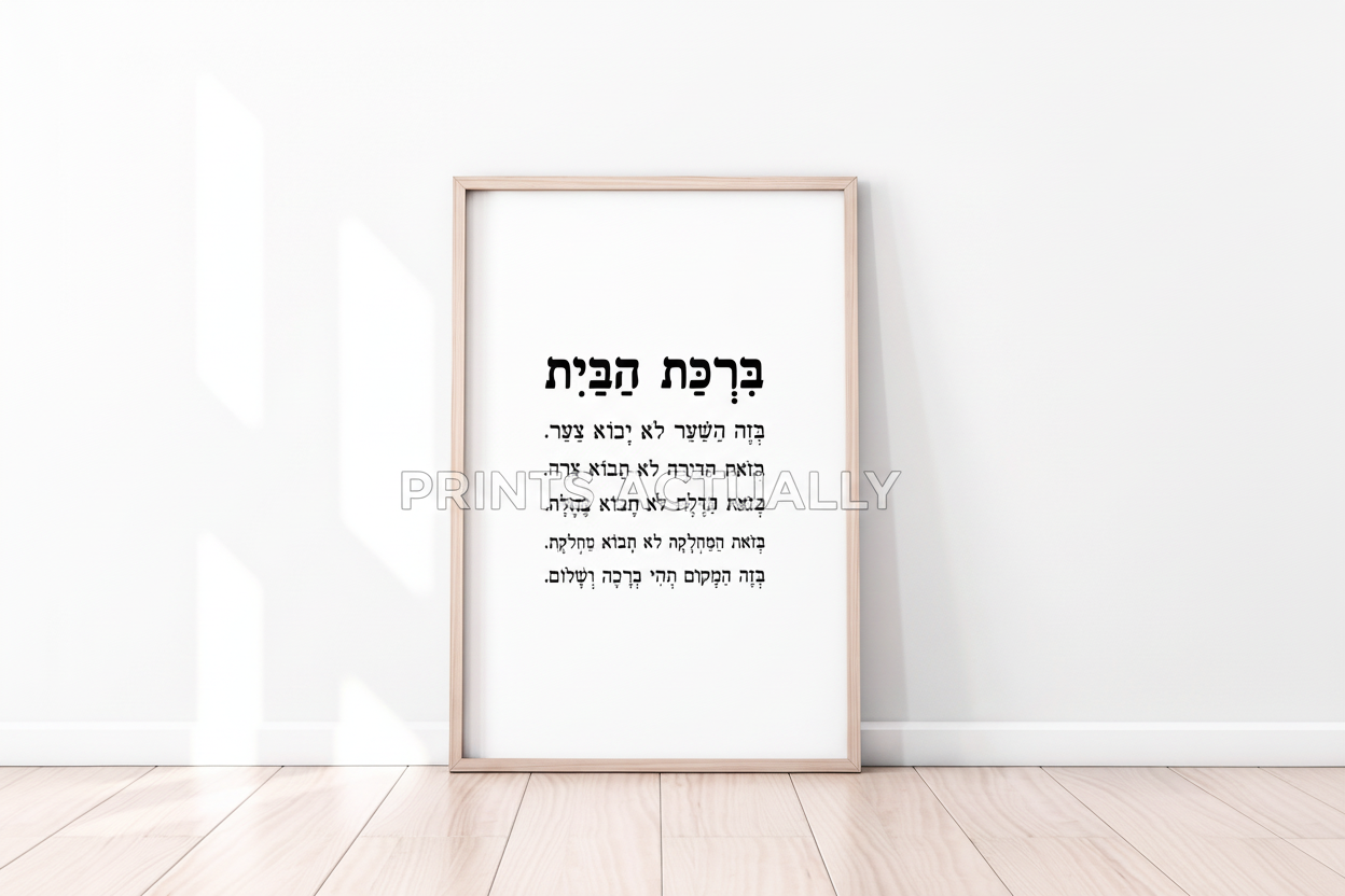 Digital download of a print with Jewish home blessing in Hebrew. This is an original print, made by us.