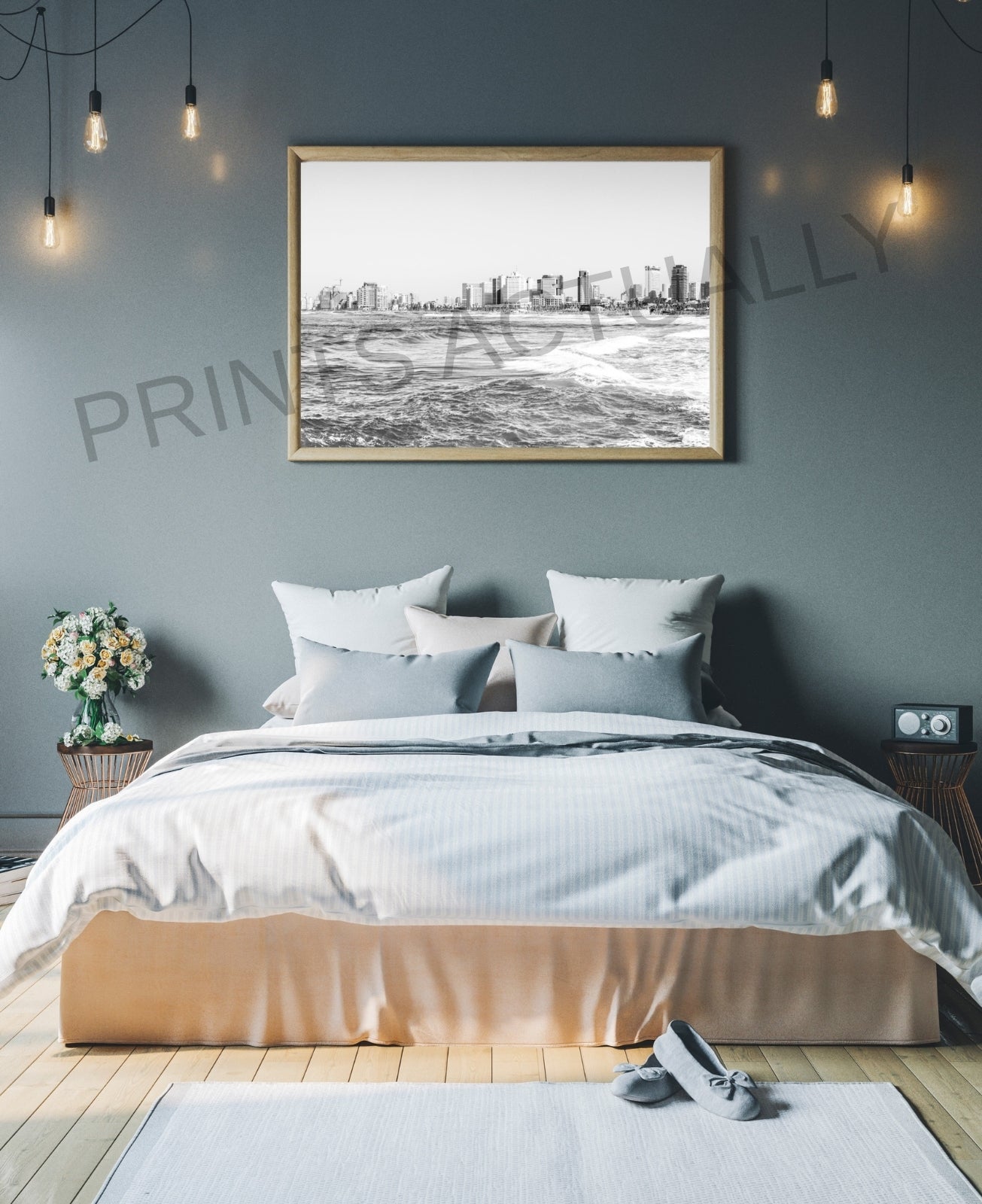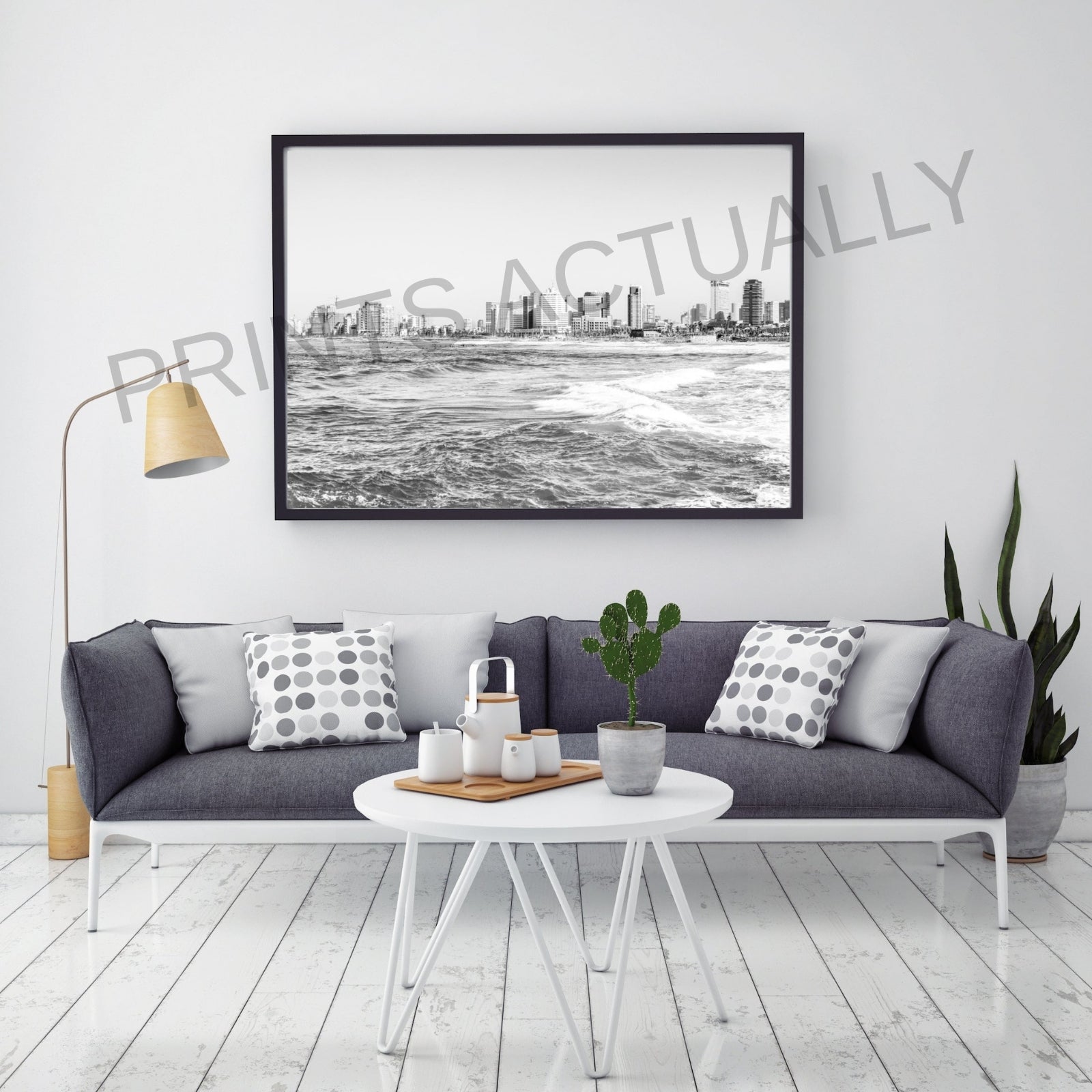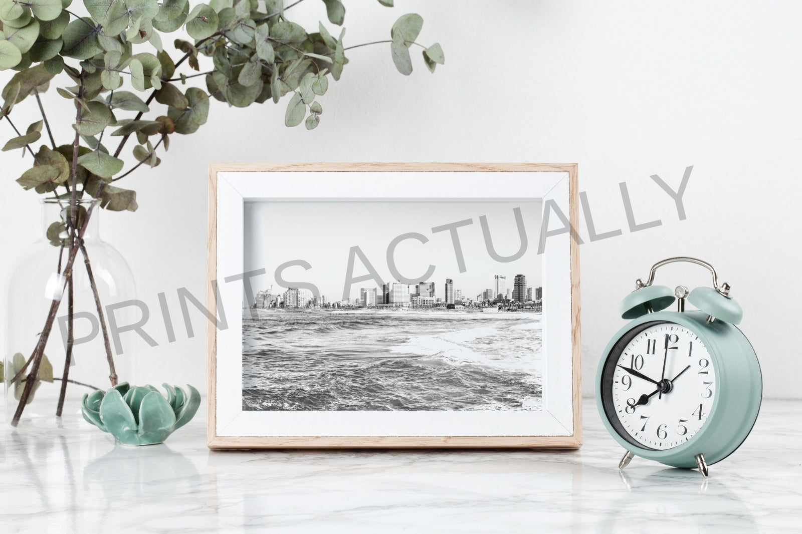 Descarga digital de impresiones en blanco y negro del horizonte de Tel Aviv. Esta es una foto original, tomada por nosotros. Puedes imprimirla tú mismo, en tu impresora, o en una imprenta.